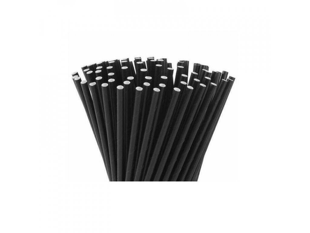 Papírové brčko černé, 200x8mm (100ks)