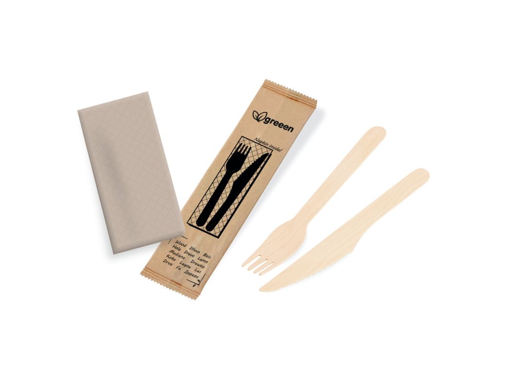 Jednorázová dřevěná příborová sada je ekologickou alternativou k plastovým příborům. Je vyrobena z kvalitního FSC 100 % dřeva z odpovědně obhospodařovaných lesů. Každá sada obsahuje nůž, vidličku a papírový ubrousek, hygienicky balené pro snadné použití.